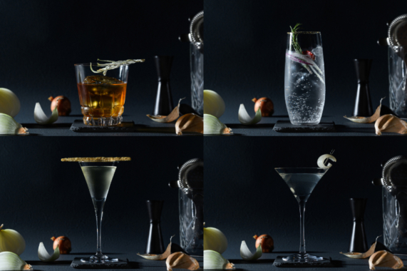 提供が開始されたのは、全国4カ所のザ ロイヤルパークホテル アイコニックで、いずれも皇居外苑濠の水草を堆肥として用いた玉ねぎを原料としたカクテル。ザ ロイヤルパークホテル アイコニック 東京汐留からは紅茶ベースの「ONION 葱roni」(1,700円)、同・名古屋からはジン、スパークリングワイン、ペッパーからなる「Spicy Onion Sour」(1,400円)。ほか、同・京都の「Onion ~Derive From Gibson~」(1,700円)、同・大阪御堂筋の「Onion Martini」(1,400円)。