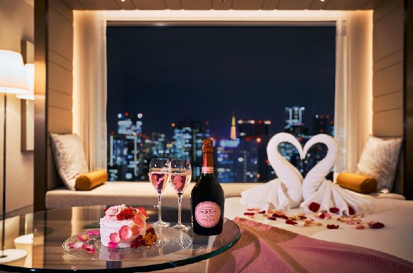 加えて、客室はローズペダルのアートやタオルアートが飾られるなど、都心の煌めく夜景とともにクリスマスムードを盛り上げる仕掛けも。先着予約20室限定で、ローラン・ペリエ ロゼのブランケットがプレゼントされる(1室1枚)。料金は69,497円〜(デラックスルーム 1室2名利用時の1名料金)。