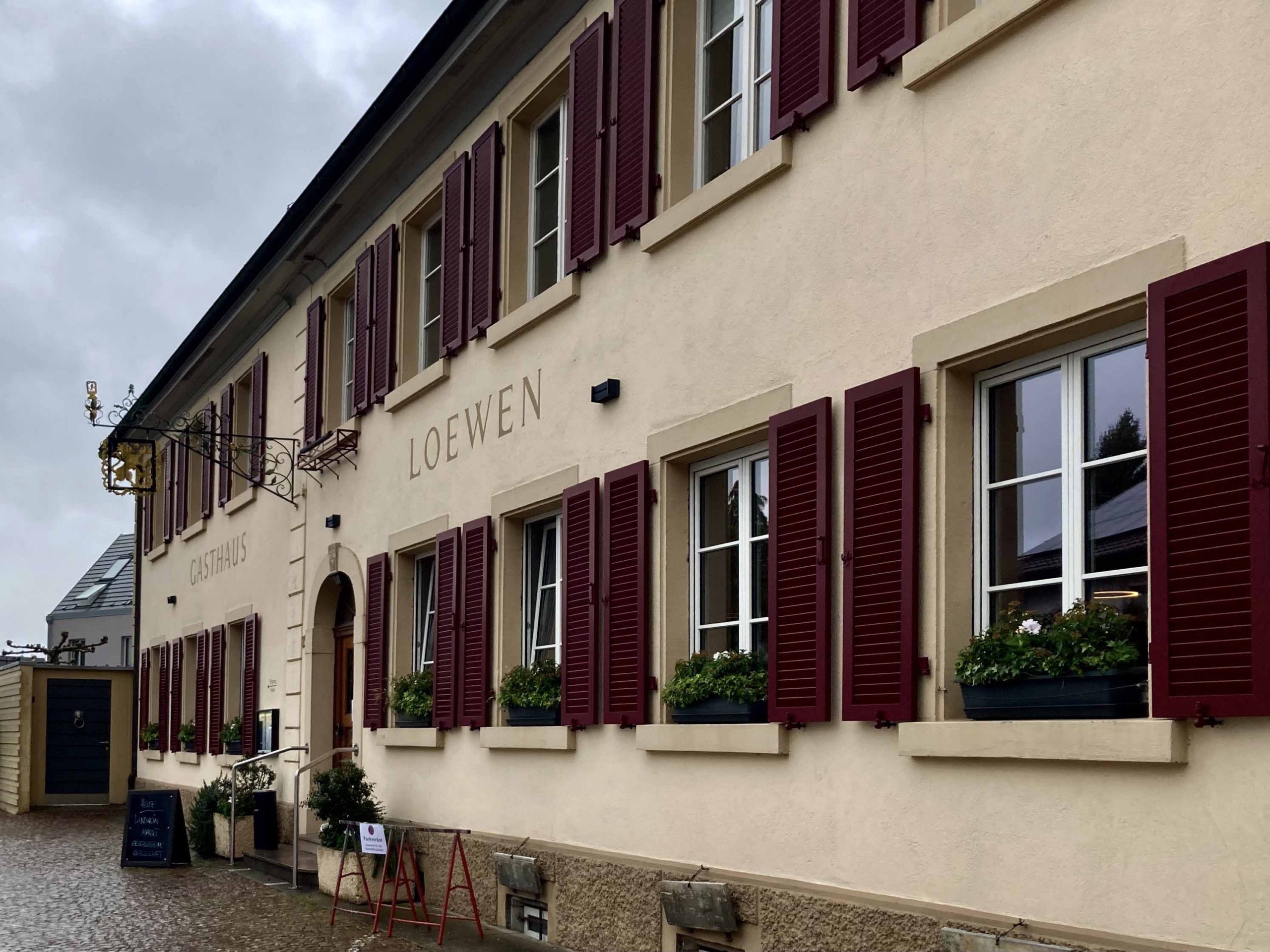 今年の会場はアイメルディンゲンのホテル兼レストラン「ツム・レーヴェン」。参加醸造所は過去最高の29社。スペースの関係上やむなく出展できなかった醸造所もあったという。午前中に関係者やプレスのための時間枠が設けられ、午後から一般客が押し寄せると、会場は大混雑となり、ラントヴァインへの関心の高さが窺えた。