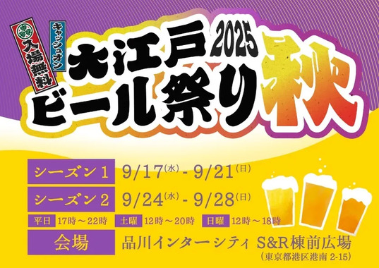9月17(水)より「大江戸ビール祭り2025秋」品川インター...